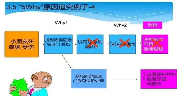 人心里方面的因素是不容易被管理和制定相應(yīng)的管理制度的。避免追求心理方面,才能夠?qū)?ldquo;為什么”指向可用于確保預(yù)防復(fù)發(fā)措施的設(shè)備和管理機制等方面的原因。