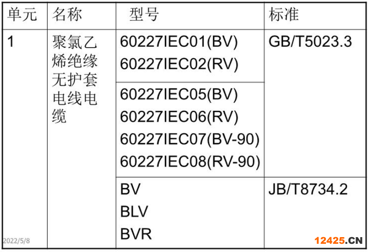 GB/T5023.1~57GB/T 5023.6額定電壓450/750V及以下聚氯乙烯絕緣電纜;