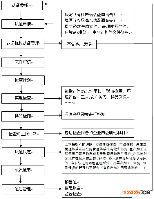 想要獲得有機(jī)產(chǎn)品認(rèn)證,需要由有機(jī)產(chǎn)品生產(chǎn)或加工企業(yè)或者其認(rèn)證委托人向具備資質(zhì)的有機(jī)產(chǎn)品認(rèn)證機(jī)構(gòu)提出申請(qǐng),按規(guī)定將申請(qǐng)認(rèn)證的文件,包括有機(jī)生產(chǎn)加工基本情況 、質(zhì)量手冊(cè)、操作規(guī)程和操作記錄等提交給認(rèn)證機(jī)構(gòu)進(jìn)行文件審核、評(píng)審合格后認(rèn)證機(jī)構(gòu)委派有機(jī)產(chǎn)品認(rèn)證檢查員進(jìn)行生產(chǎn)基地(養(yǎng)殖場(chǎng))或加工現(xiàn)場(chǎng)檢查與審核、并形成檢查報(bào)告,認(rèn)證機(jī)構(gòu)根據(jù)檢查報(bào)告和相關(guān)的支持性審核文件作出認(rèn)證決定、頒發(fā)認(rèn)證證書等過(guò)程。