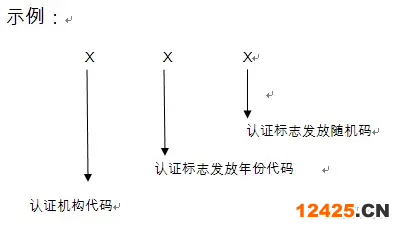 該代碼是認(rèn)證機(jī)構(gòu)發(fā)放認(rèn)證標(biāo)志數(shù)量的12位阿拉伯?dāng)?shù)字隨機(jī)號(hào)碼。數(shù)字產(chǎn)生的隨機(jī)規(guī)則由各認(rèn)證機(jī)構(gòu)自行制定。
