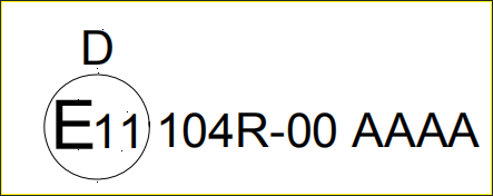 E11代表英國交通部簽發(fā)的證書,104R代表ECE R104.是反光標(biāo)志的認(rèn)證標(biāo)準(zhǔn),D代表反光標(biāo)志的類別,00為版本號,AAAA為證書號。