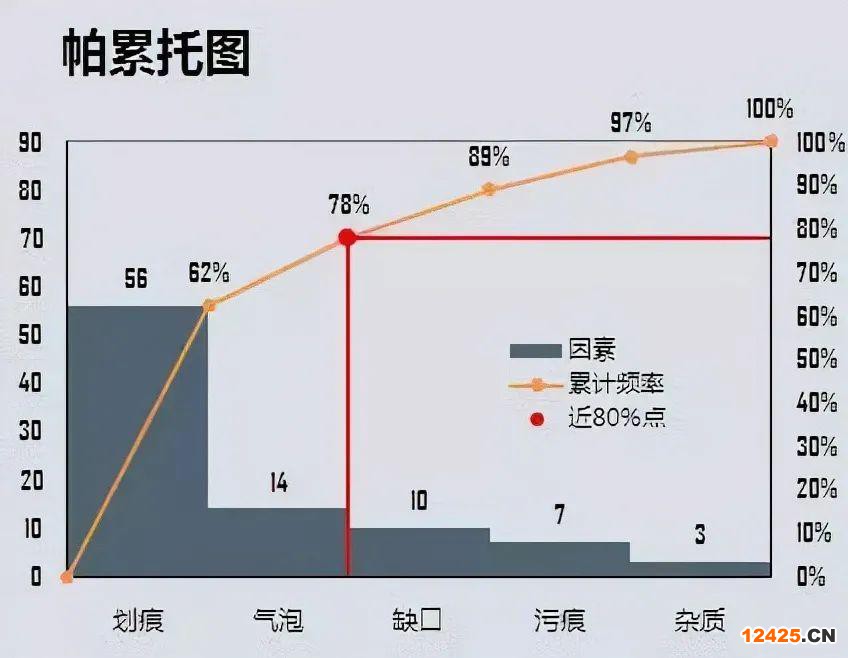 同時(shí)也是累積次數(shù)曲線表示圖,這種圖表對(duì)最有問(wèn)題的不良、工程、成品最具功效。同時(shí)如果想要解決的話,也可以預(yù)測(cè)其所達(dá)到的功效如何?以上所謂不良解析的工作就叫柏拉圖解析。