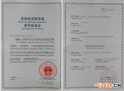 《無(wú)線電發(fā)射設(shè)備型號(hào)核準(zhǔn)證書(shū)》