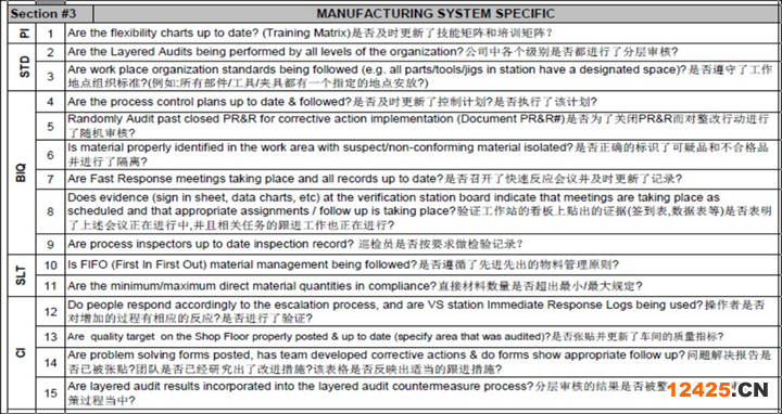 LPA檢查表一般有三個模塊:1. 一般工位問題:基本的崗位檢查項目等