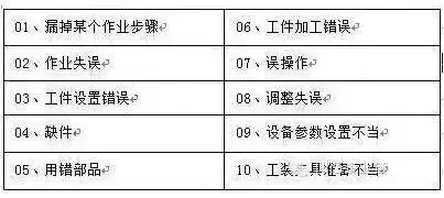 產(chǎn)生失誤的原因基本可歸為三大類,即人的原因、方法原因和設(shè)備原因,其中人為失誤所占的比重很大,這是很多質(zhì)量學(xué)者和公司管理層很早就認(rèn)識到的。
