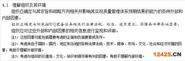 1. 在識(shí)別、理解和確定組織環(huán)境時(shí)。本條款為本標(biāo)準(zhǔn)的其他條款的要求,如質(zhì)量管理體系范圍(條款4.3)、過程(條款4.4)、方針(條款5.2)、策劃(第6章)等,提供了與內(nèi)、外部要素相關(guān)的、必要的信息基礎(chǔ),因此組織應(yīng)高度重視對(duì)組織及其環(huán)境的分析、識(shí)別、理解和確定,這是組織建立和運(yùn)行符合組織自身特點(diǎn)和實(shí)際要求的質(zhì)量管理體系的關(guān)鍵和前提。