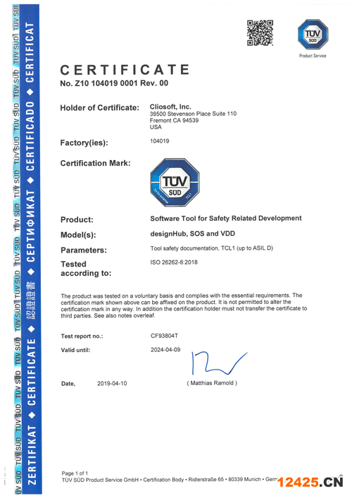 核心提示:ISO26262認證證書ISO26262是全球公認的汽車功能安全標準,該標準涵蓋功能安全需求規(guī)劃、設計、實施、集成、驗證、確認、配置等方面,旨在通