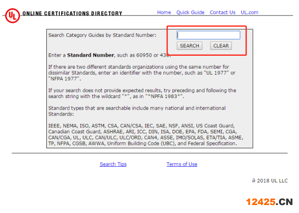 通過UL標(biāo)準(zhǔn)號(hào)查詢:在"StandardNumber"文本框中輸入對(duì)應(yīng)的標(biāo)準(zhǔn)號(hào)接著按“SEARCH”即可;譬如電線標(biāo)準(zhǔn)號(hào)為UL817.直接輸入U(xiǎn)L817即可。