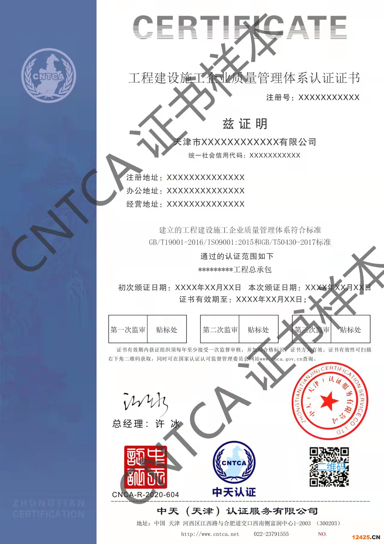 明確指出該證書(shū)是依據(jù)GB/T50430《工程建設(shè)施工企業(yè)質(zhì)量管理規(guī)范》進(jìn)行認(rèn)證的。
