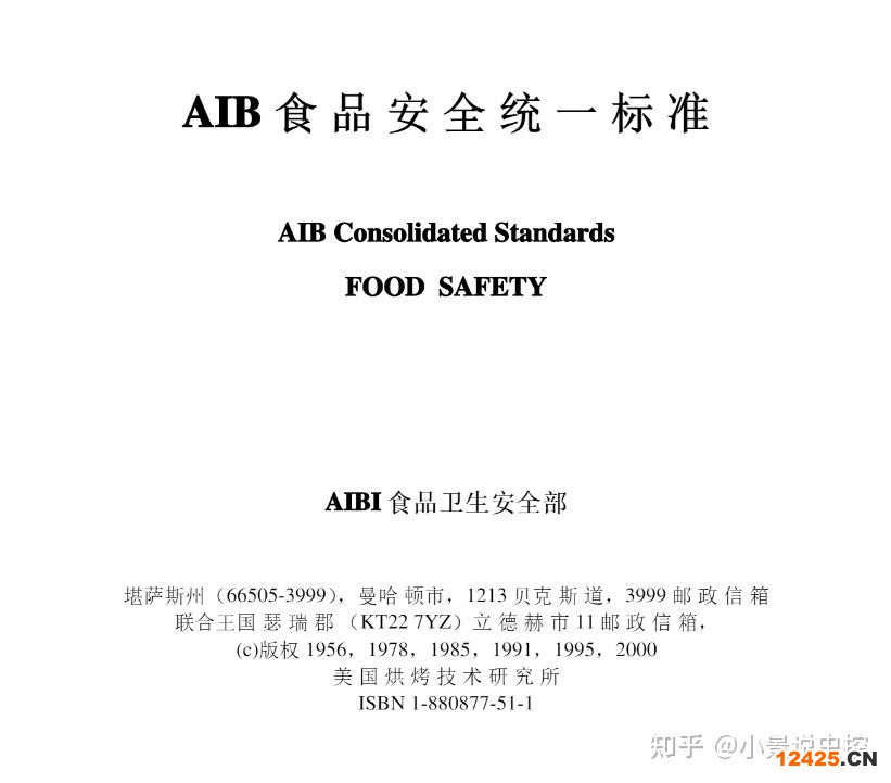 《AIB食品安全統(tǒng)一標(biāo)準(zhǔn)》