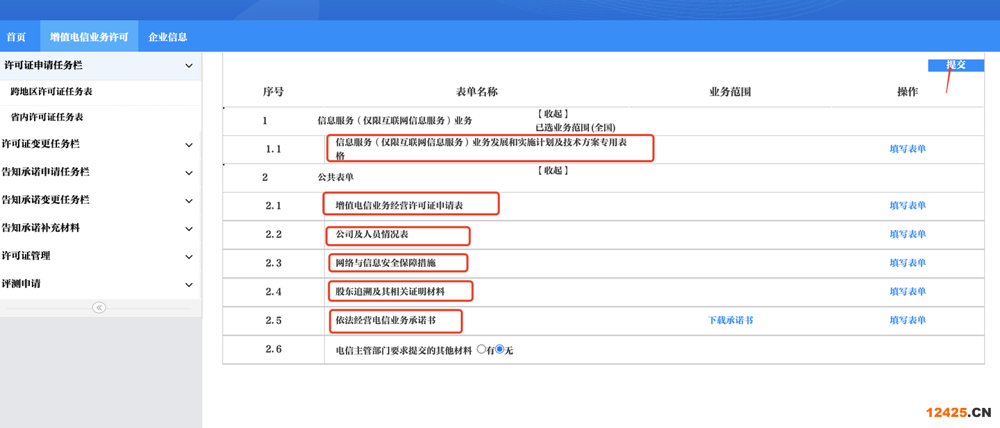 7、最后,填寫(xiě)各種申請(qǐng)表(根據(jù)公司實(shí)際情況如實(shí)填寫(xiě)即可);填寫(xiě)完畢點(diǎn)擊“提交”。