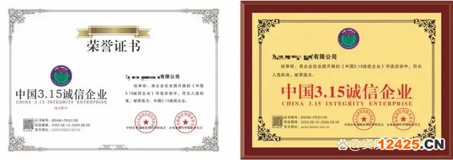 中國(guó)3.15誠(chéng)信企業(yè)證書(shū)