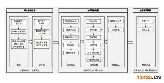 想要獲得DCMM認(rèn)證,企業(yè)還需要深入了解DCMM認(rèn)證的評(píng)估流程。通常來(lái)說(shuō),DCMM評(píng)估流程具體分為評(píng)估準(zhǔn)備、正式評(píng)估、結(jié)果評(píng)議三階段。