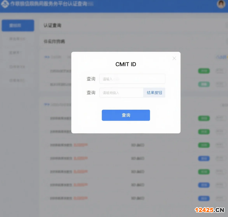 輸入查詢信息(如 CMIIT ID、設備型號、申請單位全稱),支持模糊搜索;