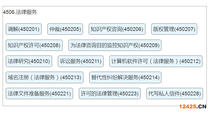 法律服務(wù);為有形財(cái)產(chǎn)和個(gè)人提供實(shí)體保護(hù)的安全服務(wù);由他人提供的為滿足個(gè)人需要的私人和社會(huì)服務(wù)。律師事務(wù)所提供的法律咨詢、訴訟代理等法律服務(wù),保安公司提供的安保服務(wù),婚姻介紹所提供的交友、婚姻介紹服務(wù),以及家政公司提供的保姆、保潔等家庭服務(wù)的商標(biāo),都在第 45 類。
