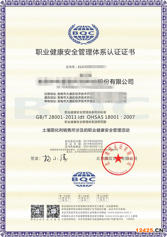 ISO45001 職業(yè)健康安全管理體系認(rèn)證證書
